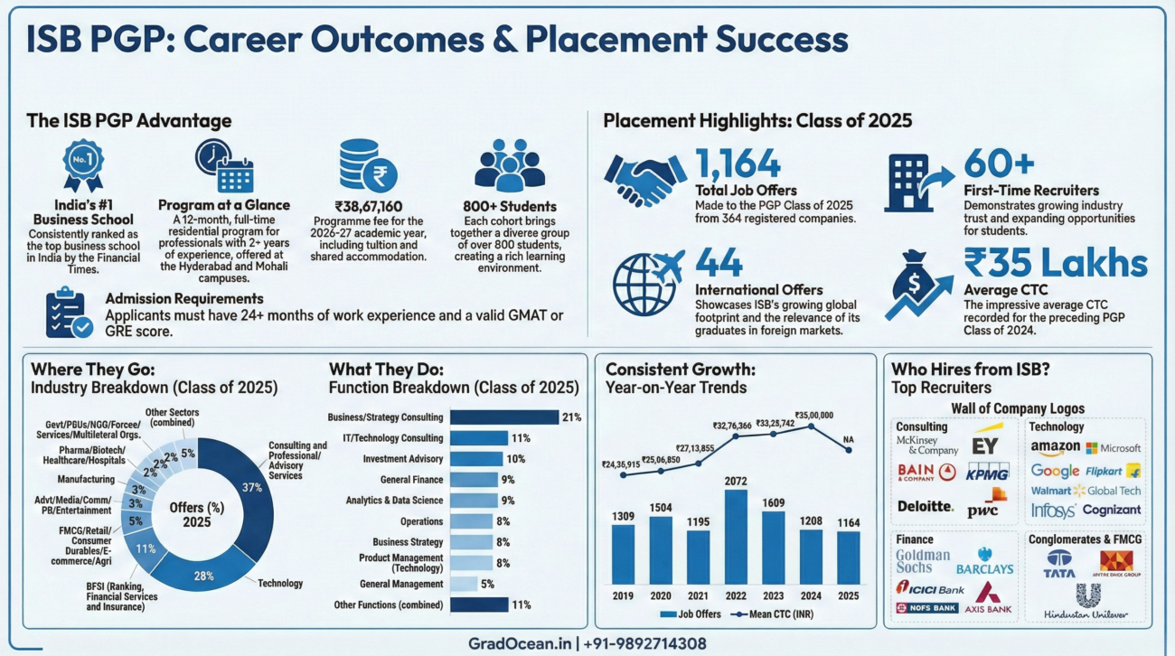 The data from ISB’s latest placement cycles confirms that the 12-month MBA is not just surviving—it is thriving as a high-velocity model for career transformation. By balancing the “Consulting Hegemony” with a deep integration into the technology and analytics sectors, ISB prepares its graduates to create “significant impact in organisations and society.”