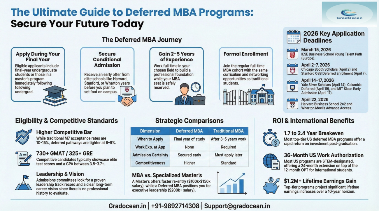Deferred MBA programs provide early access to elite networks, structured career flexibility, and long-term earning power. Both traditional and deferred pathways ultimately lead to similar management roles — but deferred gives you certainty upfront.