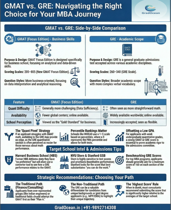 For dual-degree paths (e.g., MBA + MPP, MBA + public policy, MBA + international studies), the GRE is often the more practical choice.