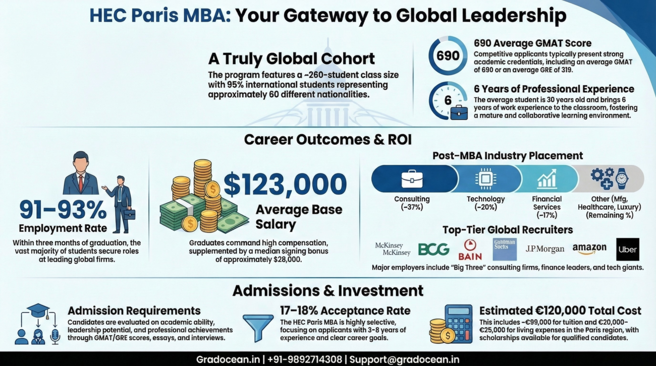 The MBA at HEC Paris is one of the leading European MBA programs, known for its strong placement outcomes in consulting, technology, and finance. The program attracts a highly international cohort and is designed for professionals looking to accelerate their global careers.